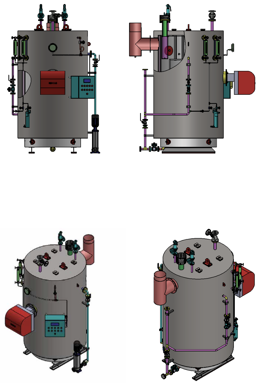 Tất cả các đơn vị đều được đóng gói đồng bộ tại nhà máy bao gồm các bộ điều khiển vận hành, van xả áp (van an toàn), đầu đốt và hệ thống cấp nhiên liệu. Việc lắp đặt trở nên đơn giản vì chỉ cần đấu nối các đường ống dịch vụ là có thể đưa vào vận hành. Hệ thống đầu đốt linh hoạt có sẵn để đốt khí tự nhiên, khí gas hóa lỏng (LPG), dầu số 2 (dầu DO), dầu nặng (FO), hoặc kết hợp các loại nhiên liệu này. Lớp cách nhiệt bông khoáng mật độ cao dày 3 inch đảm bảo giảm thiểu thất thoát nhiệt bức xạ.